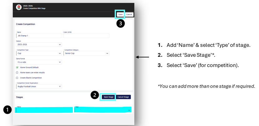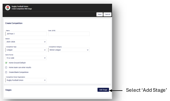 - The Create Competition Within Stage screen will appear.