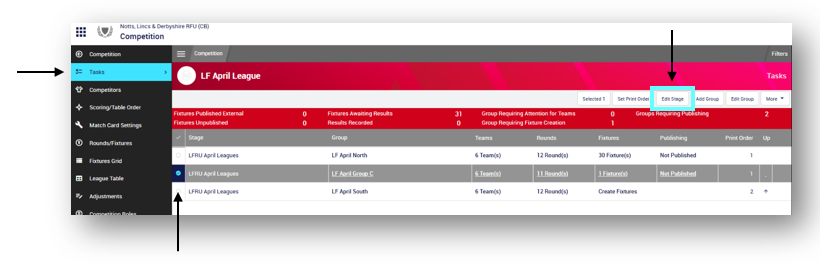 - This will open the Create Competition Within Stage screen where changes can be made.