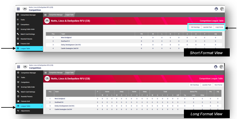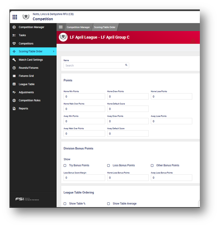 This section allows you to configure how points are awarded and how the league table is displayed for your competition.