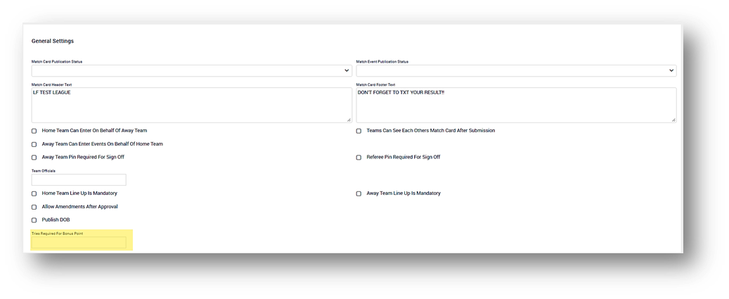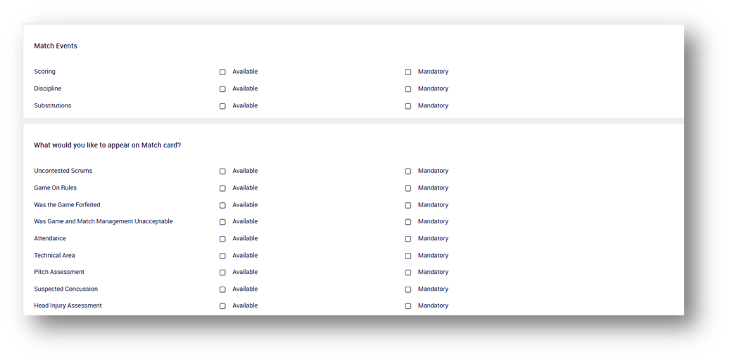 - Enable additional competition-specific fields (e.g. uncontested scrums, Game On rules)