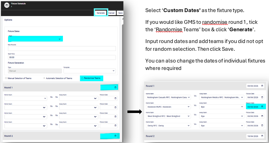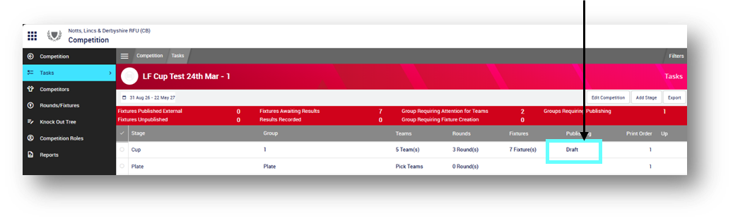 To ensure fixtures appear in club GMS accounts, Who’s the Ref, and the Fixtures & Results webpage, the publish status must be set to Publish External.