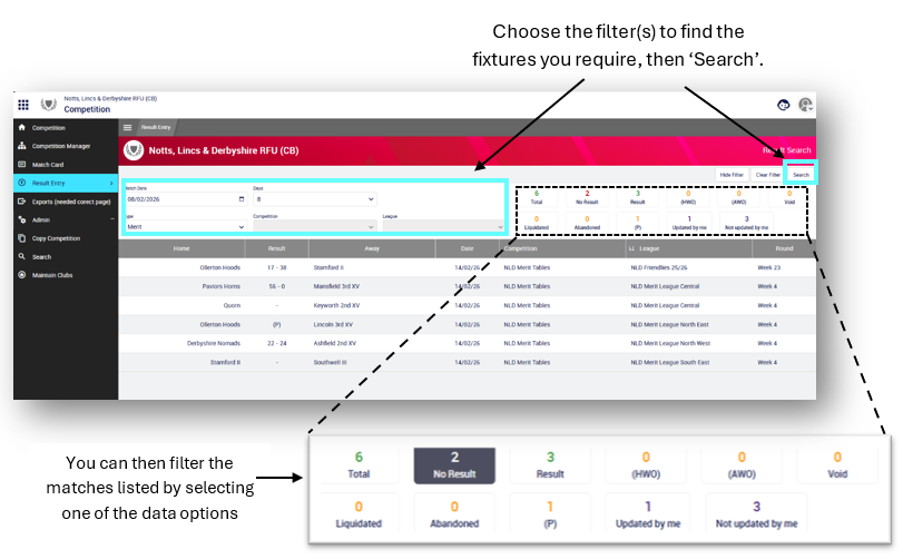 As a Competition Organiser, you can enter match outcomes on behalf of clubs using the Results Entry screen.