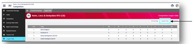 Alternatively, click Competition Manager and select the relevant competition group. - Select League Table from the left-hand menu.